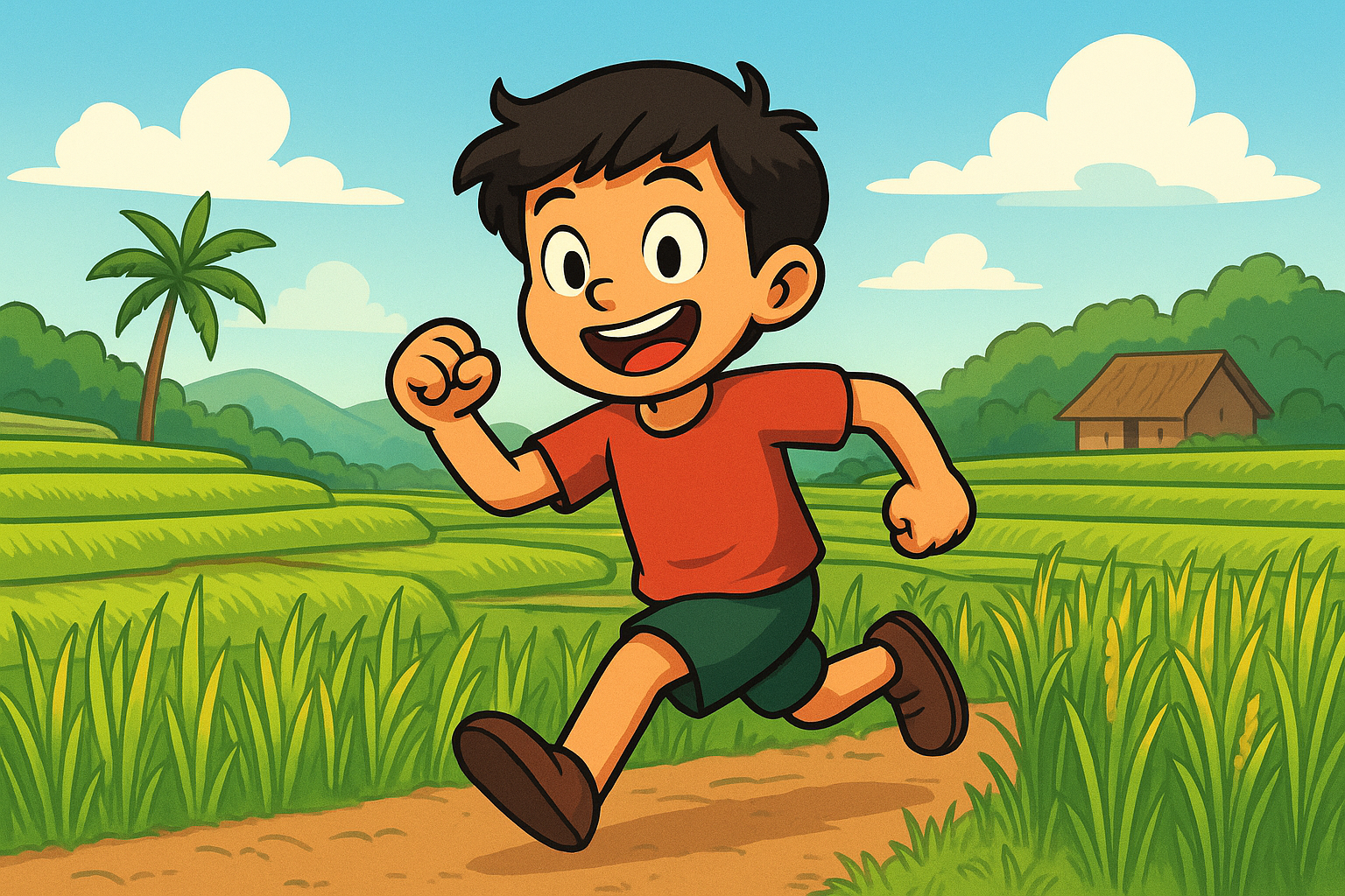 Rafi has been having so much fun working on his comics! He’s been coming up with exciting stories and colorful characters, and he’s really proud of his latest creations. This is one he drew of himself running through Indonesia - isn't it incredible? He can’t wait to share even more of his drawings with you soon!